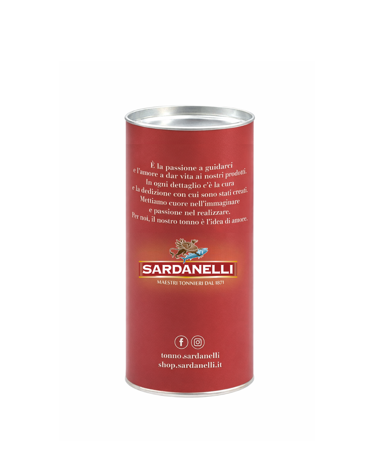La latta da collezione selezionata contiene 1 vaso di Filetti di tonno all’Olio di Oliva 680g